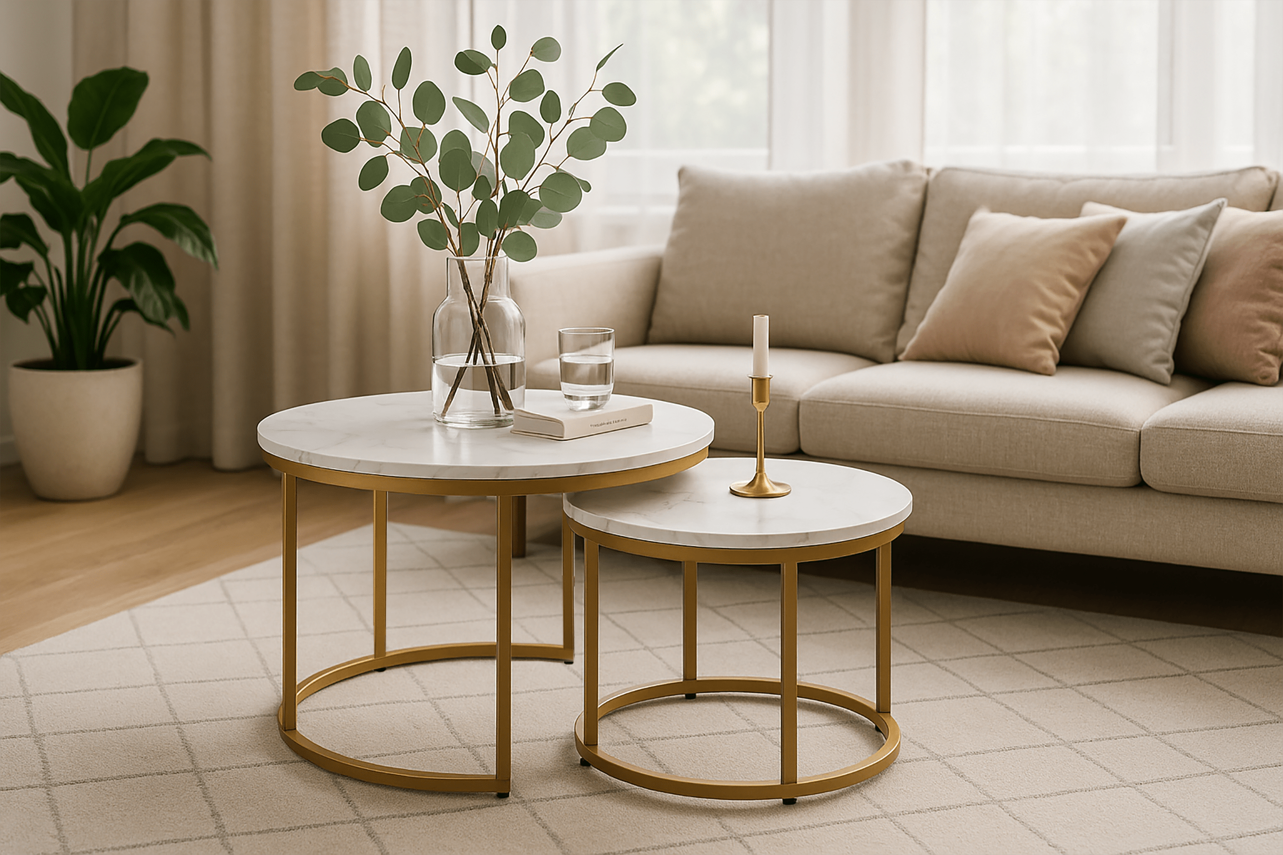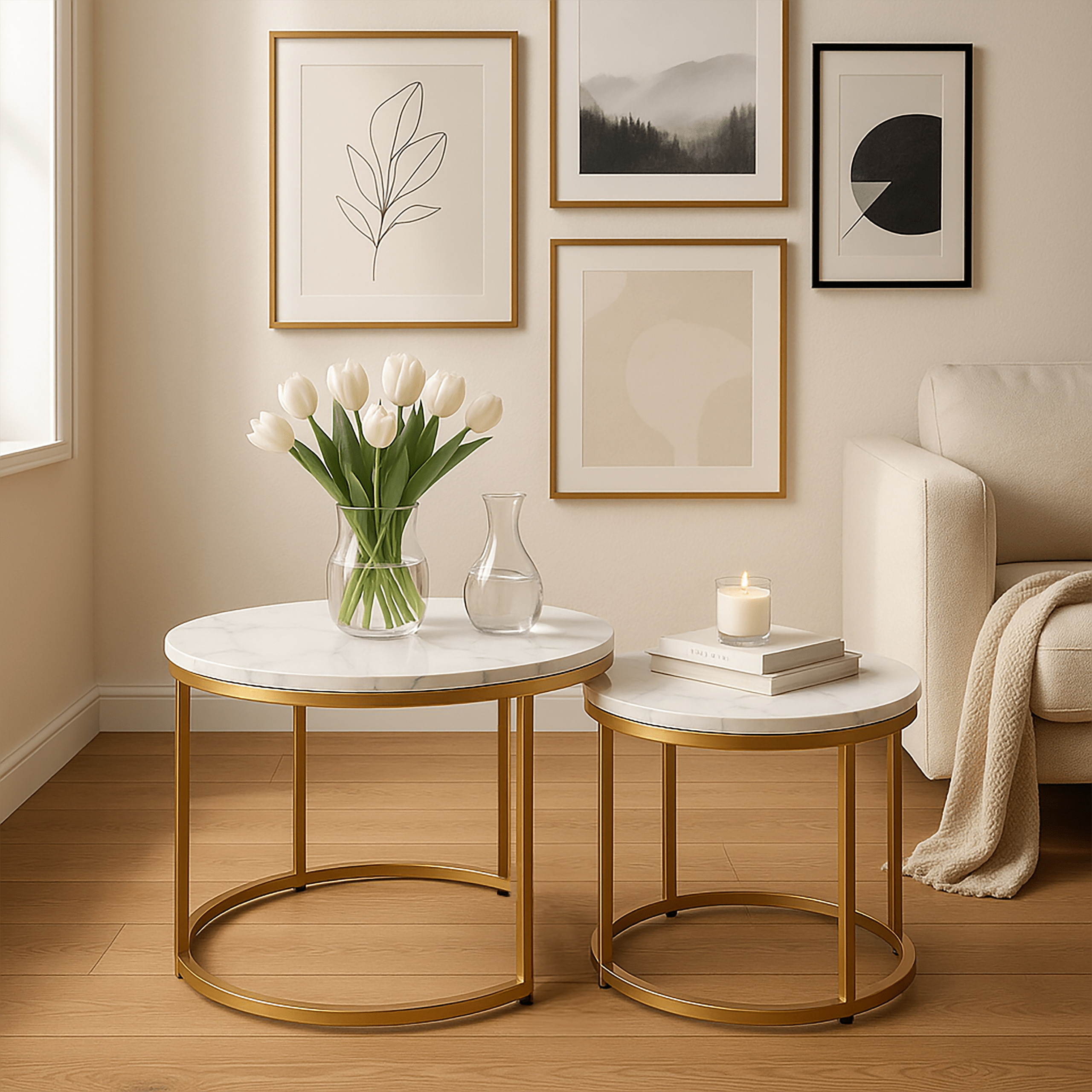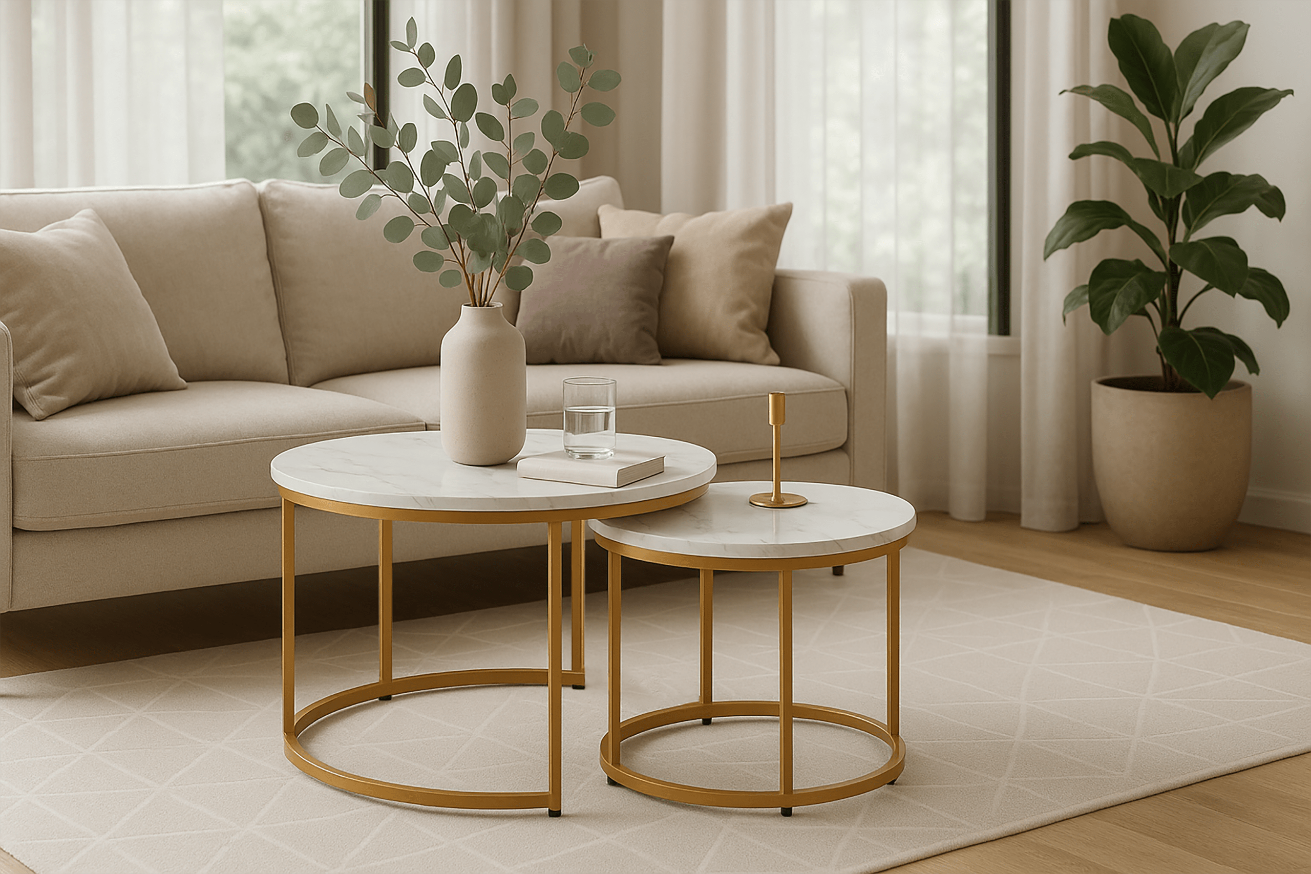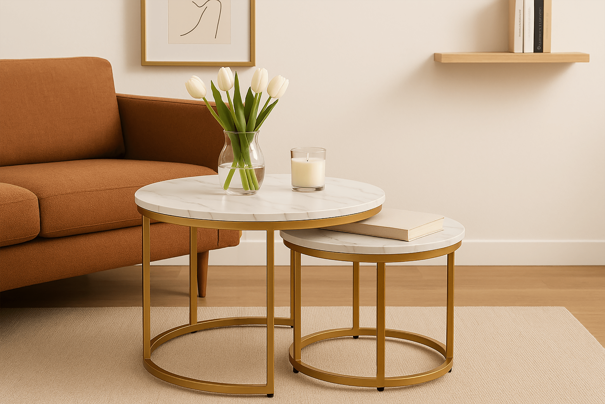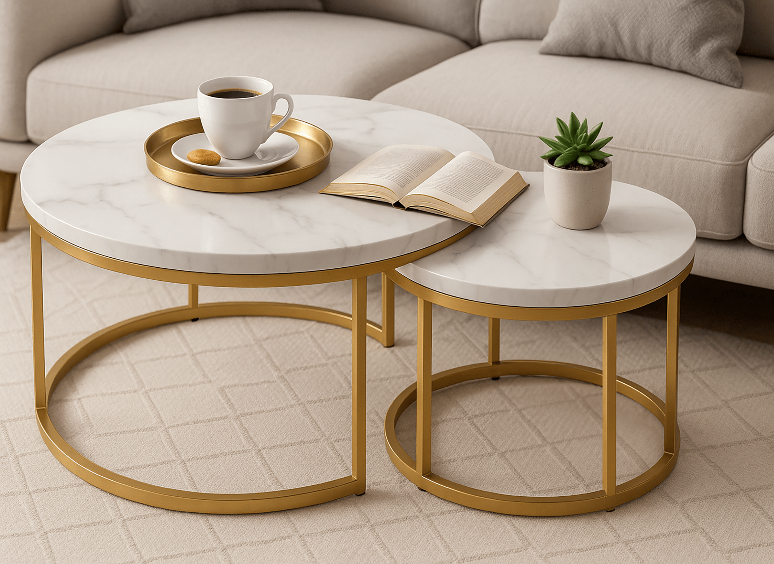 Stolik kawowy okrągły MARMUR 2szt fi 53x45/fi 43x35 SK110 | MakataSolution