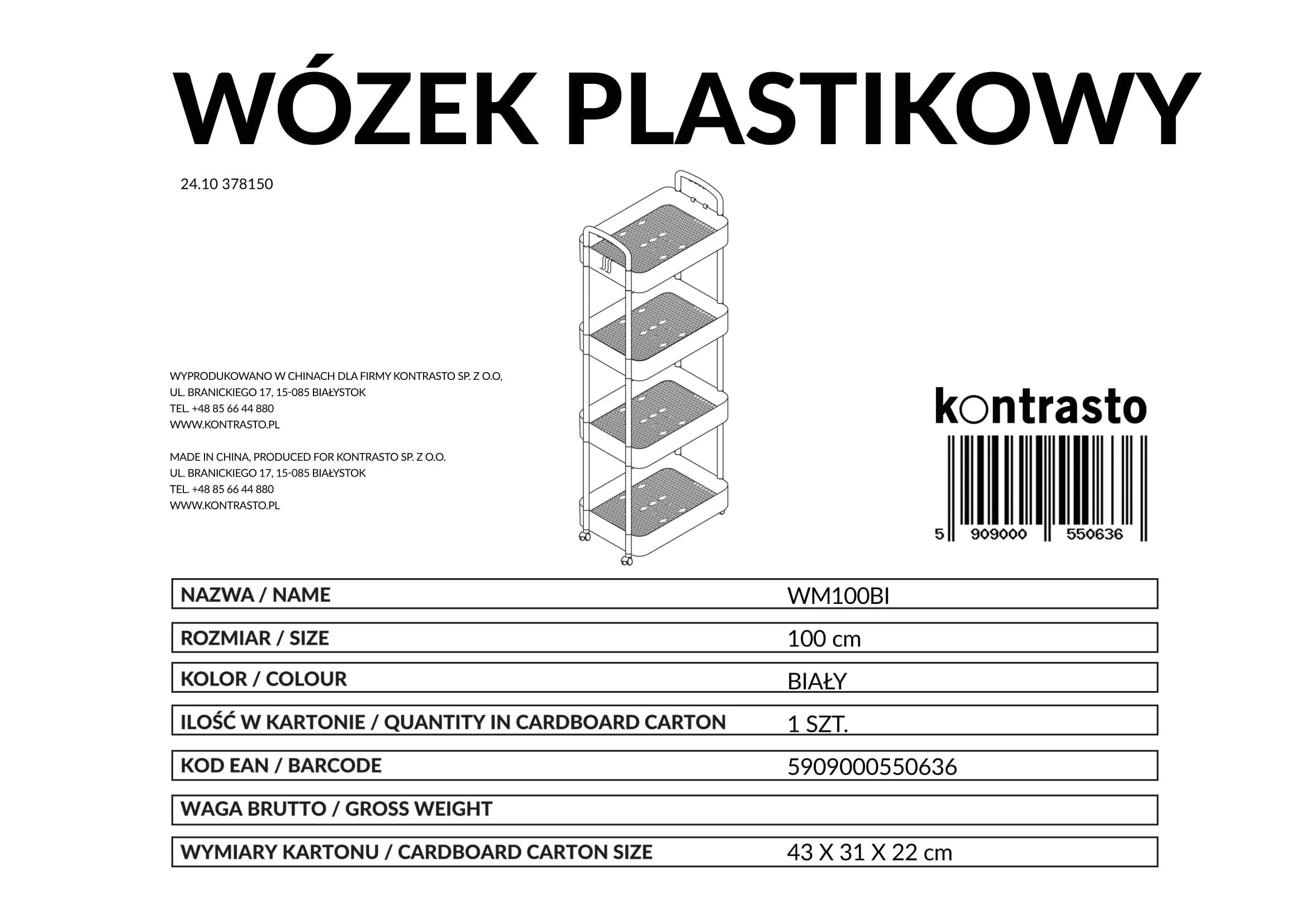 WM100BI Wózek plas 4 półk 100 biał S KKK | MakataSolution