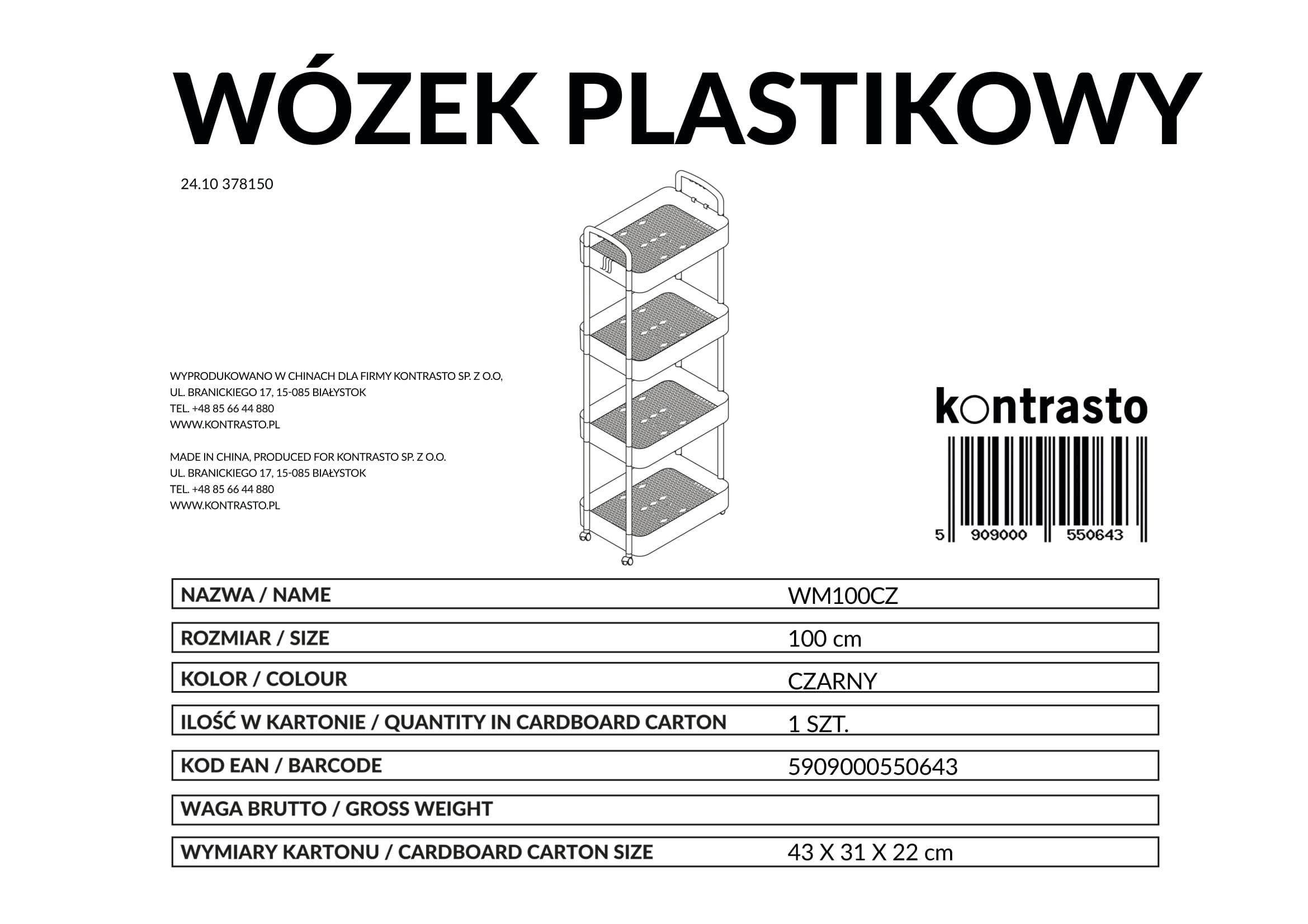 Wózek plastikowy 4 półki 100cm czarny | MakataSolution