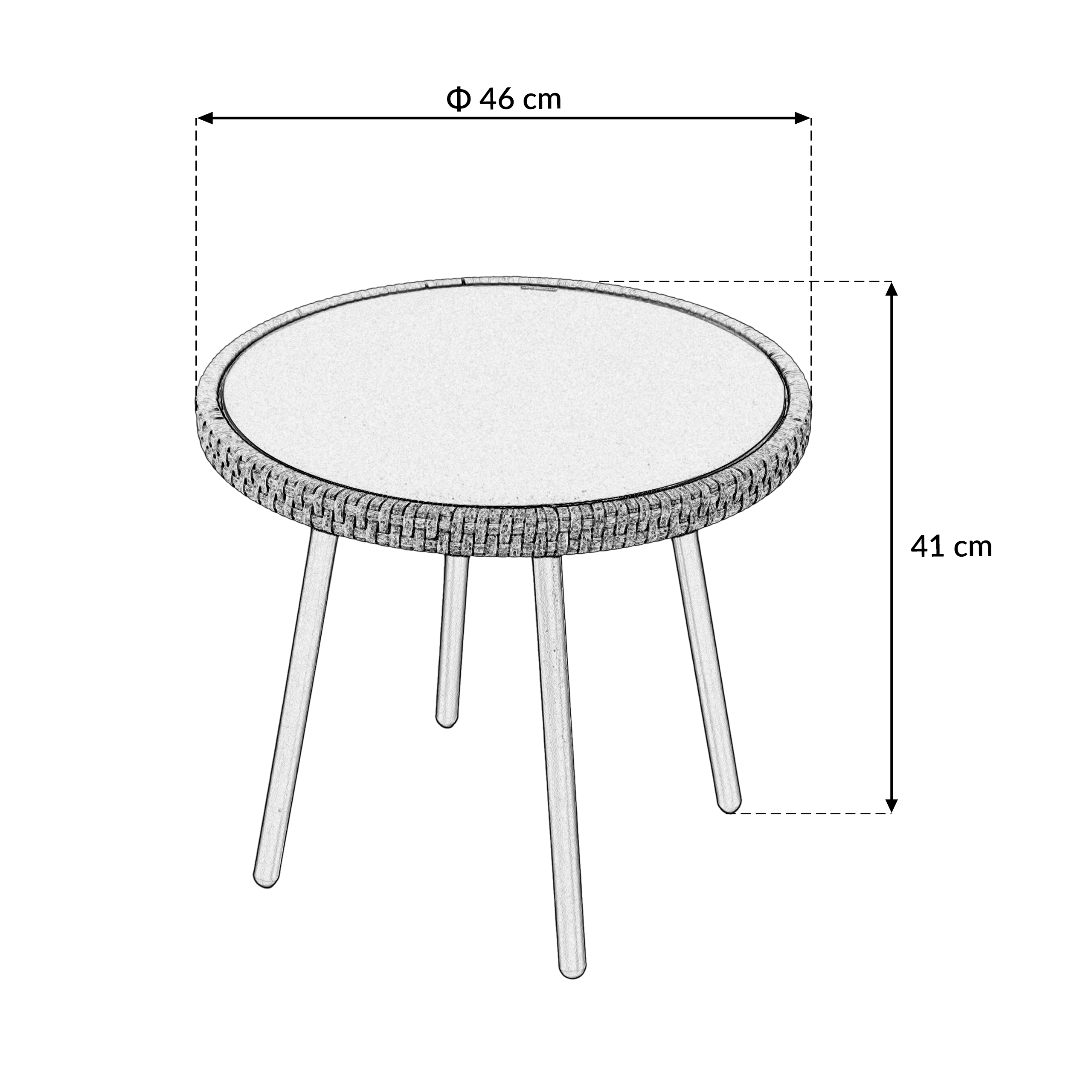 | Wymiar blatu stolika | Ø46 cm Wysokość stolika |